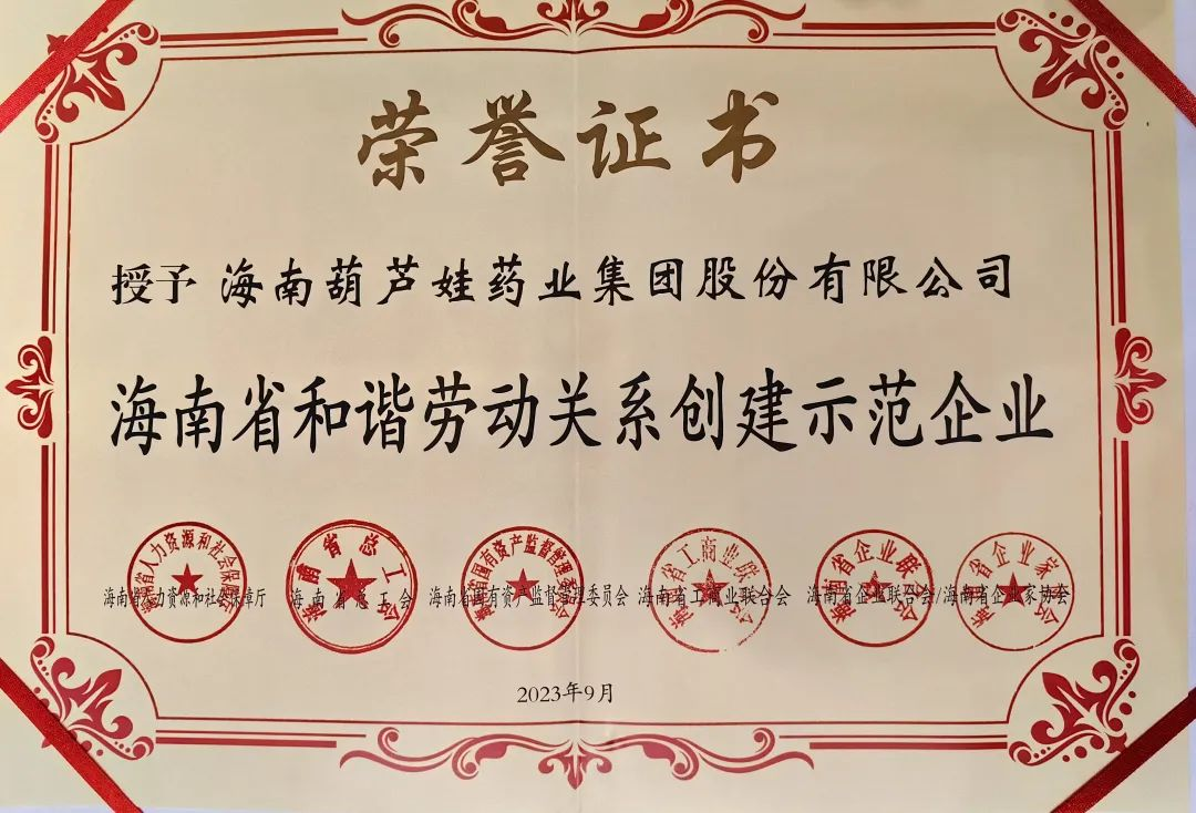 1277星际电子游戏药业集团获评“海南省和谐劳动关系创建示范企业”